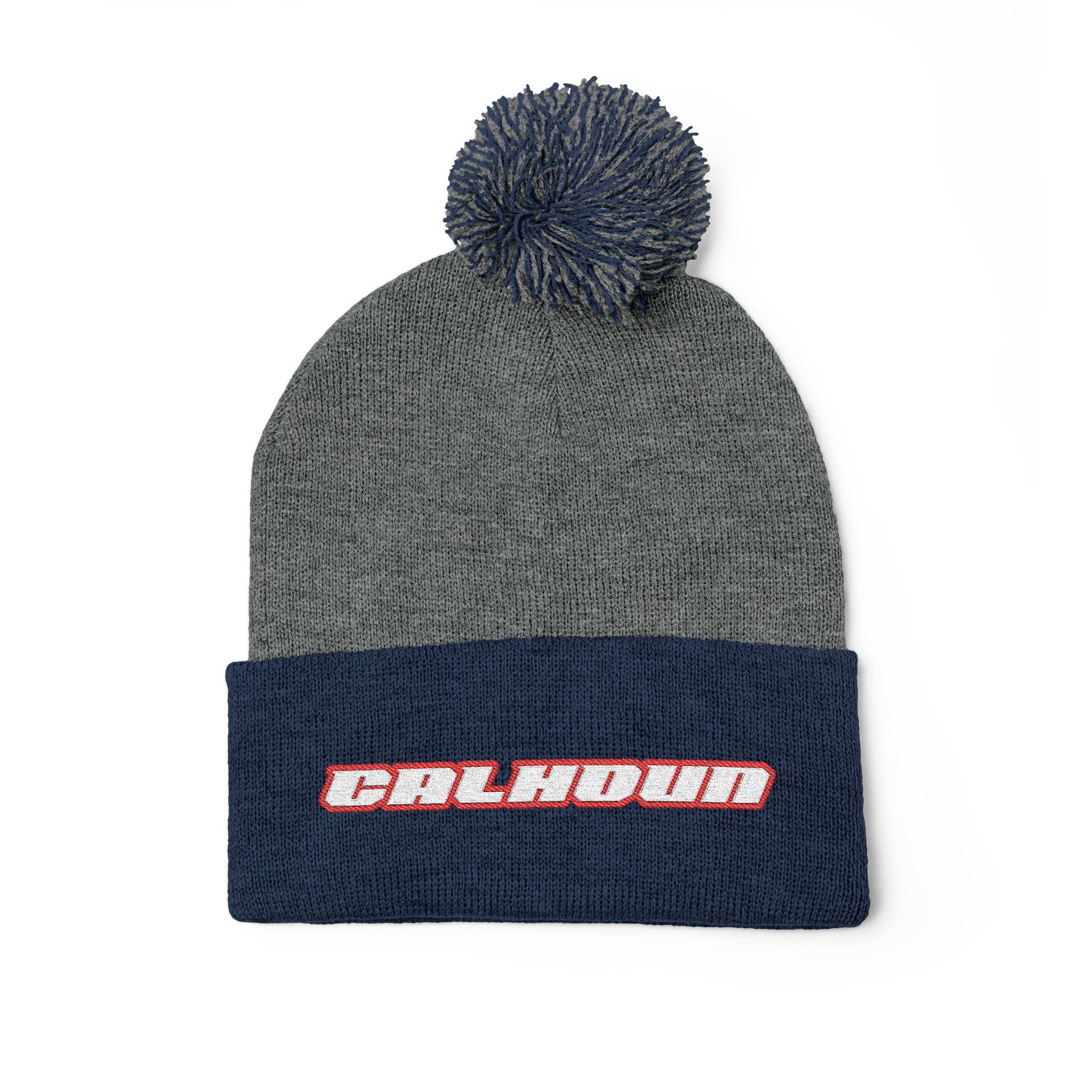 Show your support for Colin Calhoun in style with this bold, two-tone pom-pom beanie. Featuring a heather gray body topped with a fluffy, marled gray-and-navy pom, and a deep navy cuff, it blends comfort and performance-ready flair. Centered on the cuff, the white “CALHOUN” embroidery with a striking red outline delivers an aggressive, racing-inspired look that pops against the dark background. Designed for fans who want to represent their driver on chilly track days or in everyday streetwear, this beanie balances warmth, style, and unmistakable motorsport energy.ight runs.