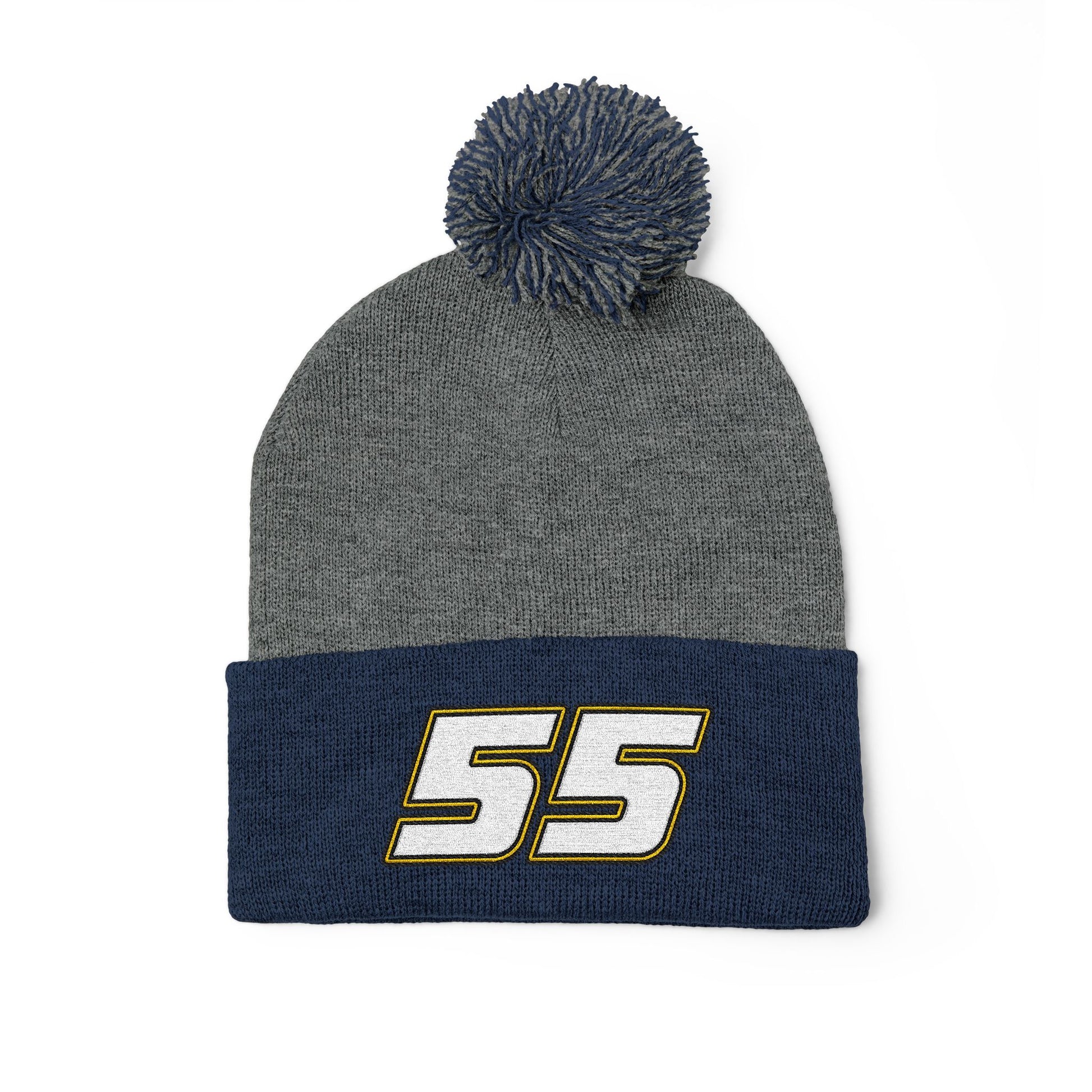 Keep the heat in and the race spirit alive with the Carson Craig #55 Pom Beanie. Designed in bold blue and gray with a high-contrast #55 outlined in yellow, this winter essential brings track-side energy to cold-weather days. The dual-tone pom-pom adds playful personality while still keeping the motorsport attitude on full throttle.