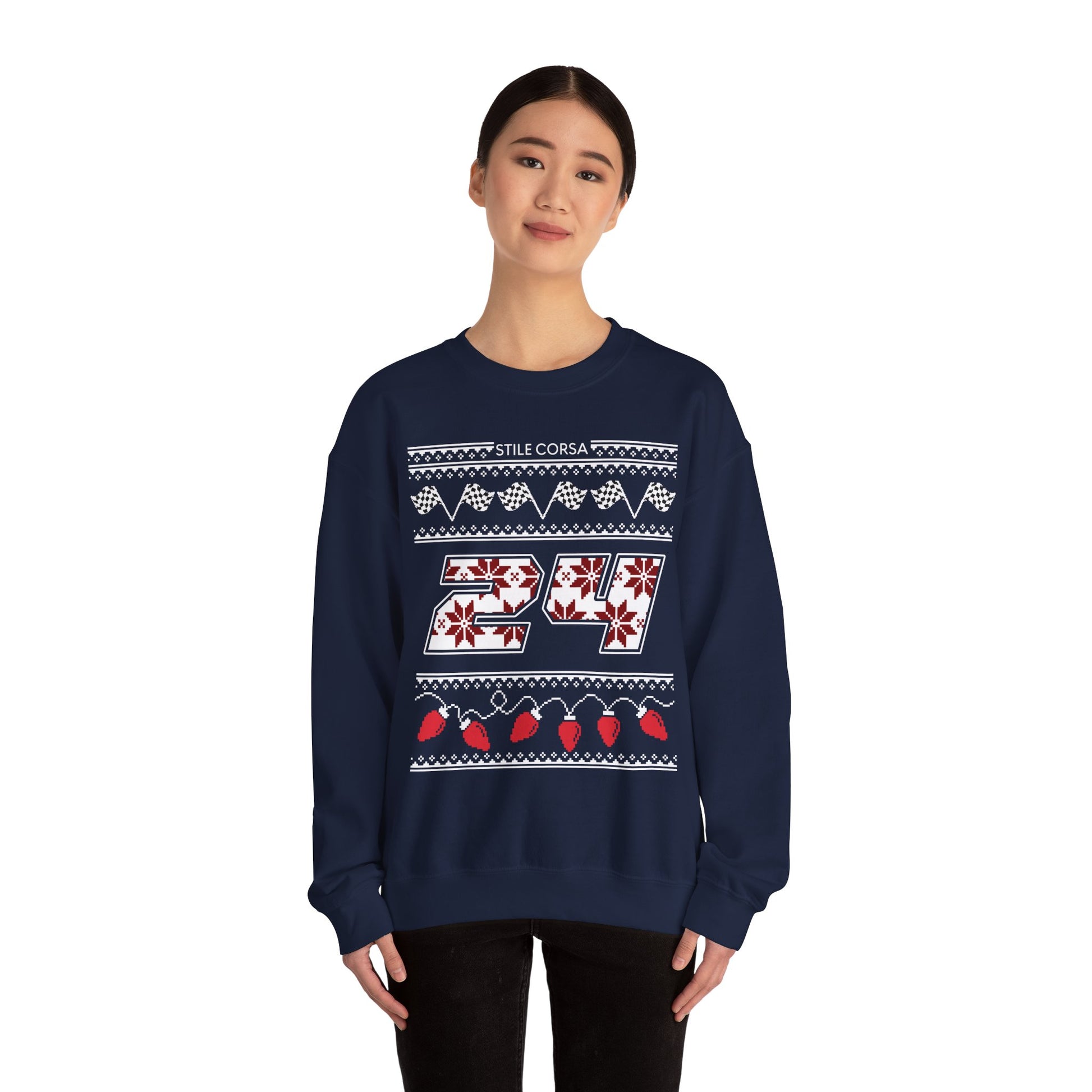 Get cozy this season with Clay O’Brien’s #24 Holiday Crewneck. Crafted in rich maroon soft fleece, this relaxed unisex sweatshirt combines warmth with motorsport style. The front features a festive racing-inspired “ugly sweater” print: a bold “24” in white with red outline, filled with intricate snowflake patterns, framed by checkered flags, geometric accents, and a string of holiday lights. Perfect for fans, drivers, or anyone looking to bring trackside energy to their winter wardrobe, this crewneck blends festive fun with high-octane racing spirit.