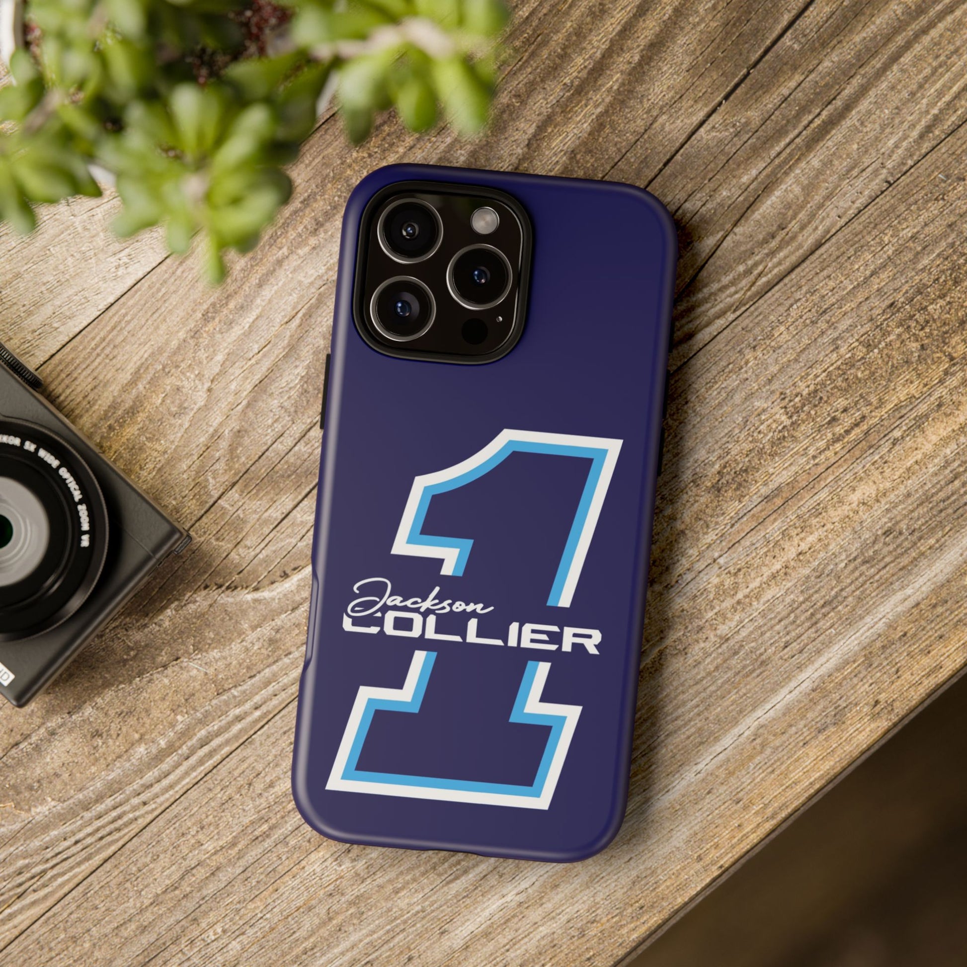 Show your support for Jackson Collier every day with the #1 Victory Case. Bold, sporty, and built to stand out, this case features his signature name paired with the iconic #1—perfect for fans who want to carry a piece of the Jackson Collier spirit wherever they go. Sleek navy, crisp white, and cyan accents give it a dynamic, motorsport-inspired look, letting you represent your favorite driver and claim the top spot in style. Durable, personalized, and made for true fans.