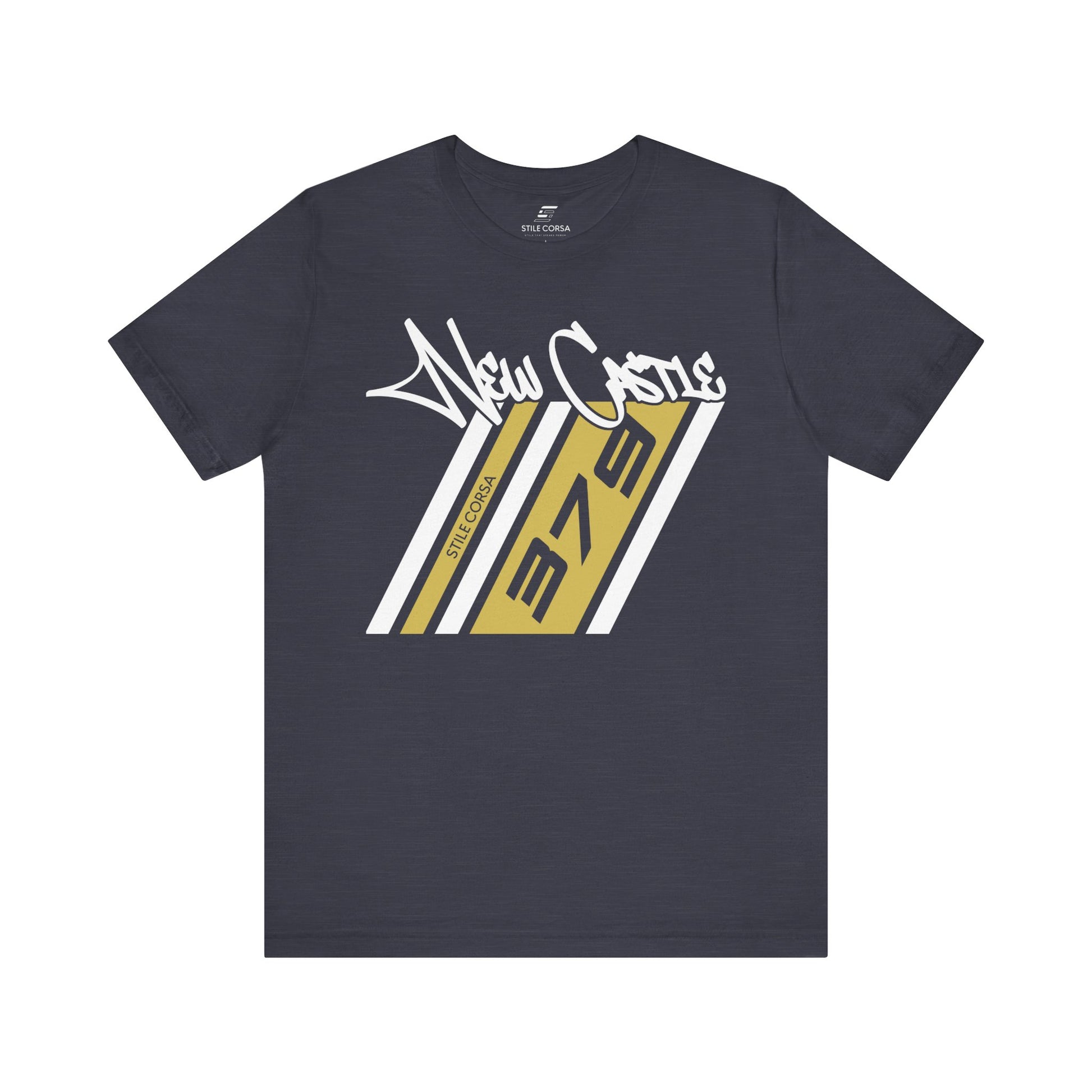 The New Castle 379 Edition Tee captures the energy of race day with a street-style twist. This cotton T-shirt features bold diagonal graphics, with “New Castle” in a striking graffiti-inspired font and the number 379 stamped proudly across the chest.