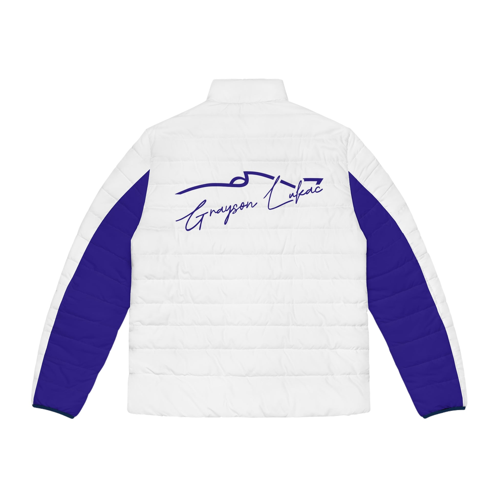 Own the winter with calm confidence in the Grayson Lukac Pure Speed Puffer. Clean, composed, and effortlessly fast, this jacket reflects Grayson’s smooth and controlled racing style. The mostly white design with refined purple touches delivers a fresh, elevated motorsport look that stands out with subtle authority. Whether you’re trackside or navigating cold city nights, this puffer represents precision, balance, and quiet speed—winter, mastered the Grayson Lukac way.