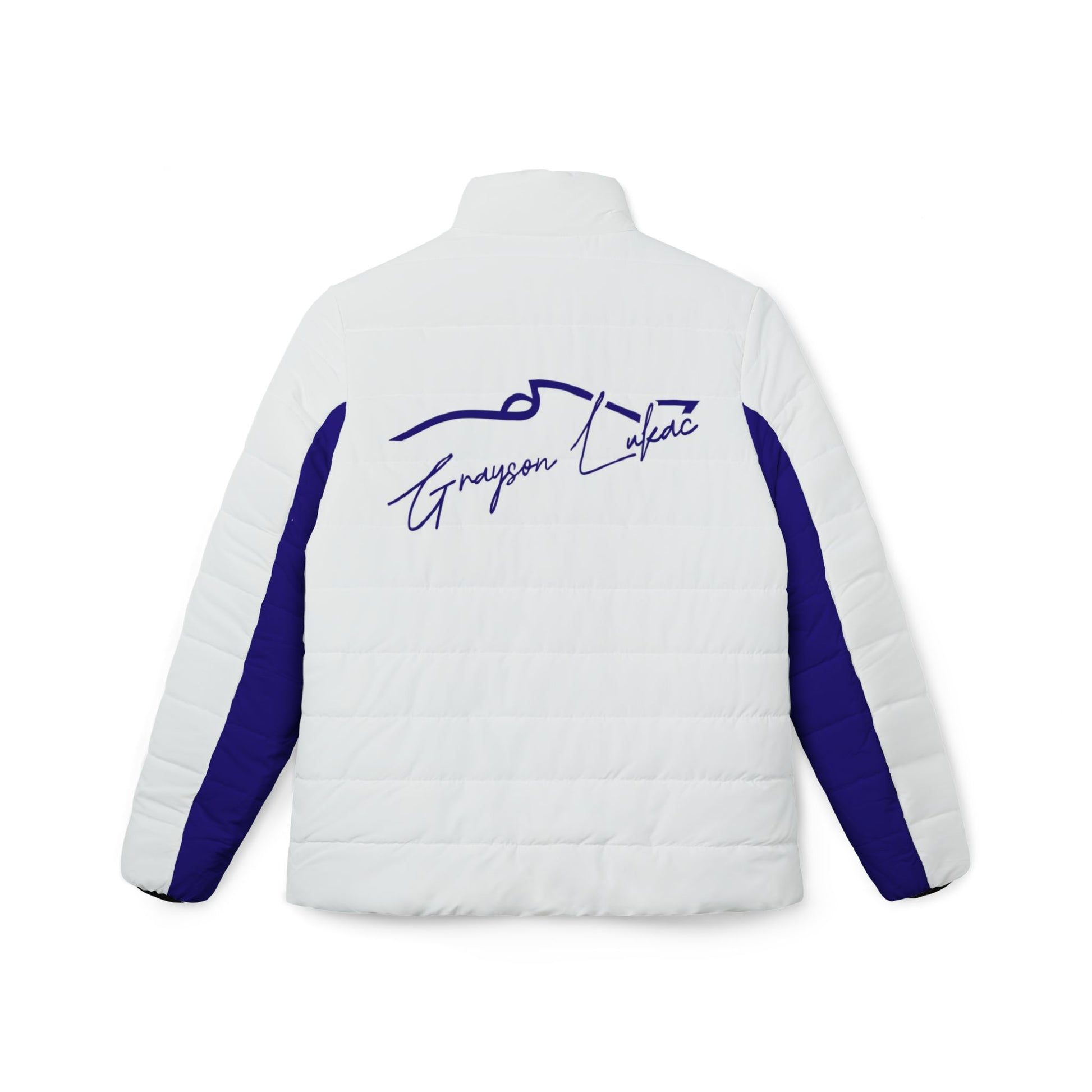 Own the winter with calm confidence in the Grayson Lukac Pure Speed Puffer. Designed with a refined racing aesthetic, this puffer blends lightweight warmth with clean, modern style. The white base accented by soft purple lines creates an elegant yet competitive presence. Perfect for cold mornings, race nights, and everyday wear, this jacket embodies clarity, control, and understated performance.