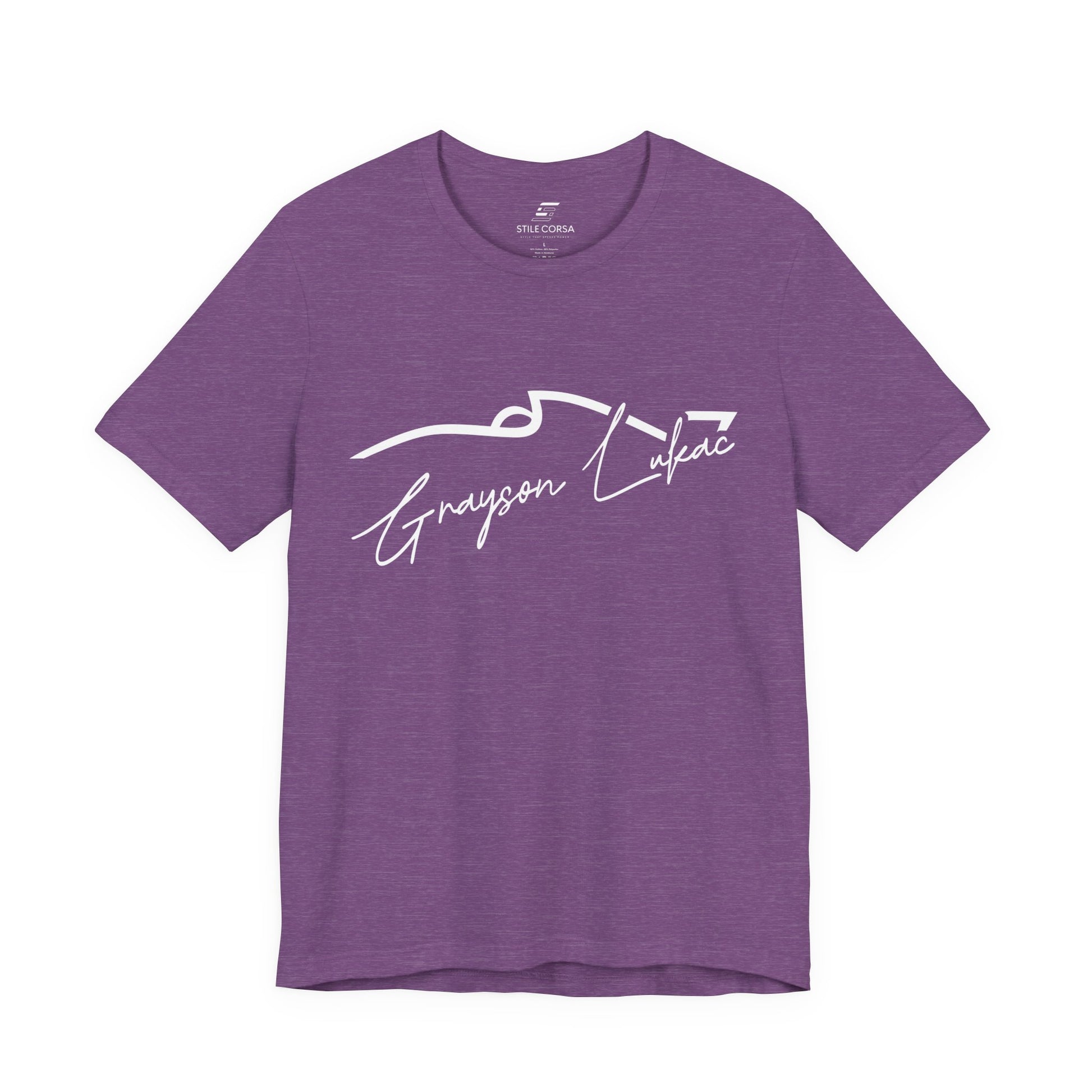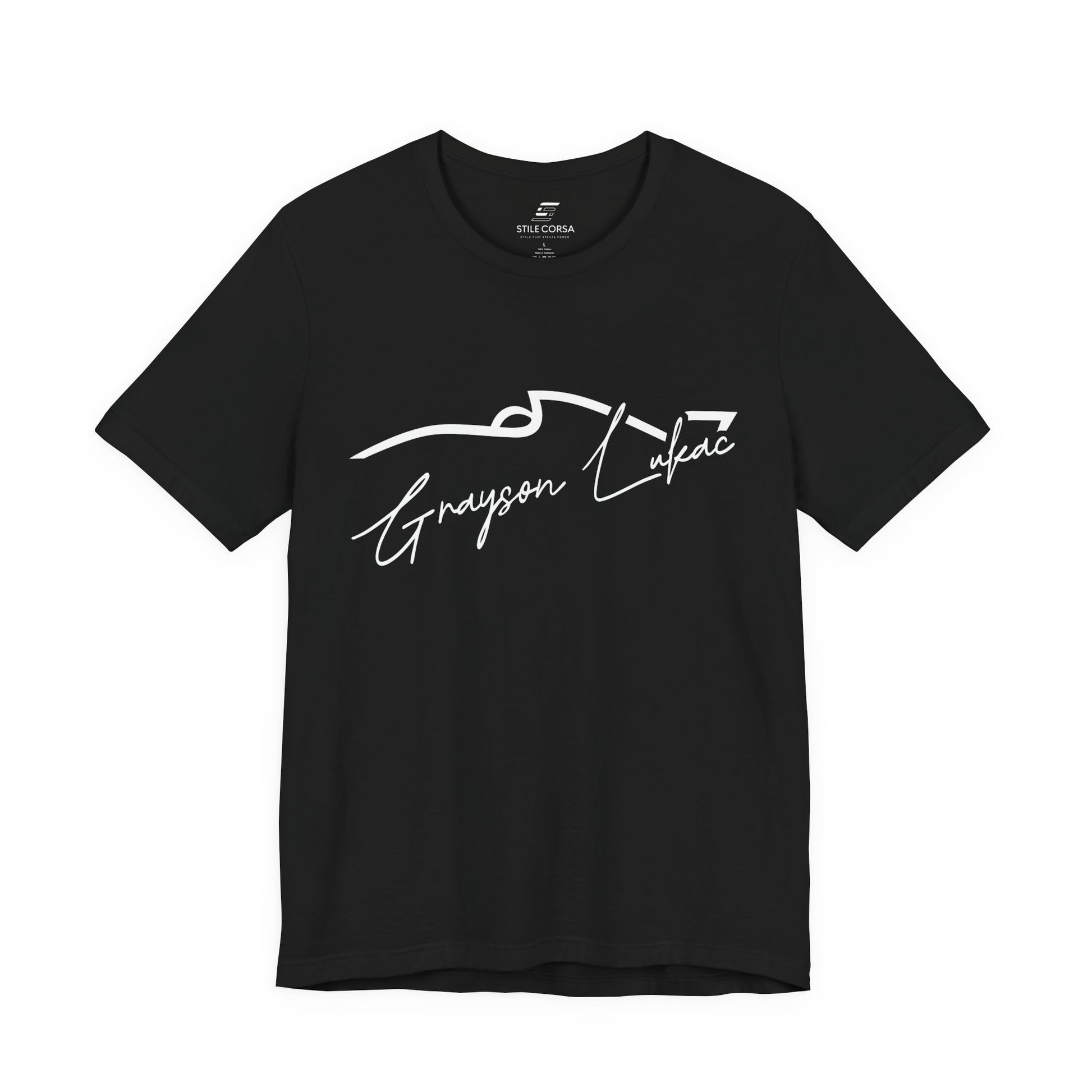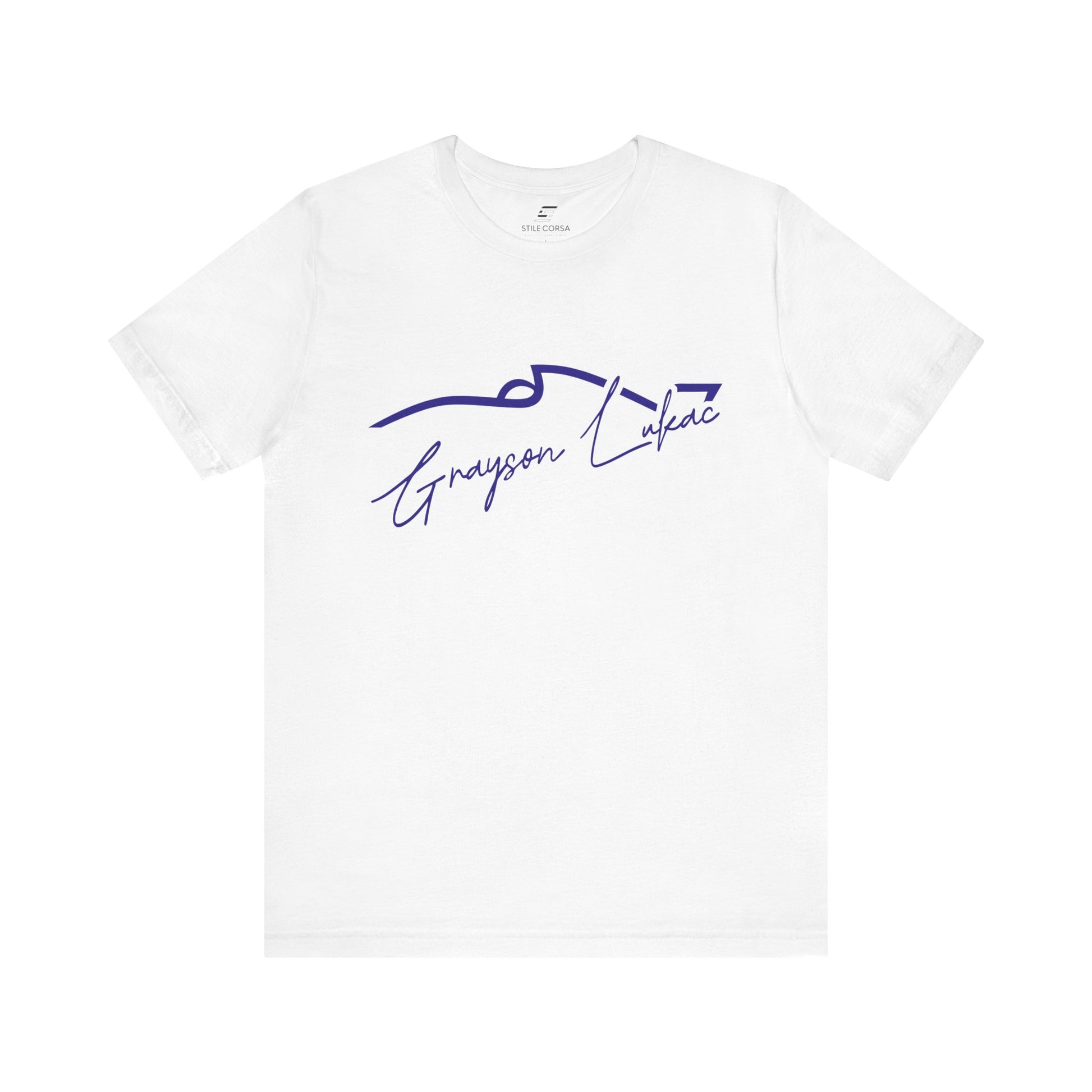 The Grayson Lukac Signature Tee is more than just apparel — it’s a statement of support for one of racing’s rising talents. Featuring Grayson’s own signature across the chest in bold dark blue, the design reflects his determination, style, and connection with fans who believe in his journey. Simple yet powerful, this tee lets you carry a piece of Grayson’s spirit wherever you go.