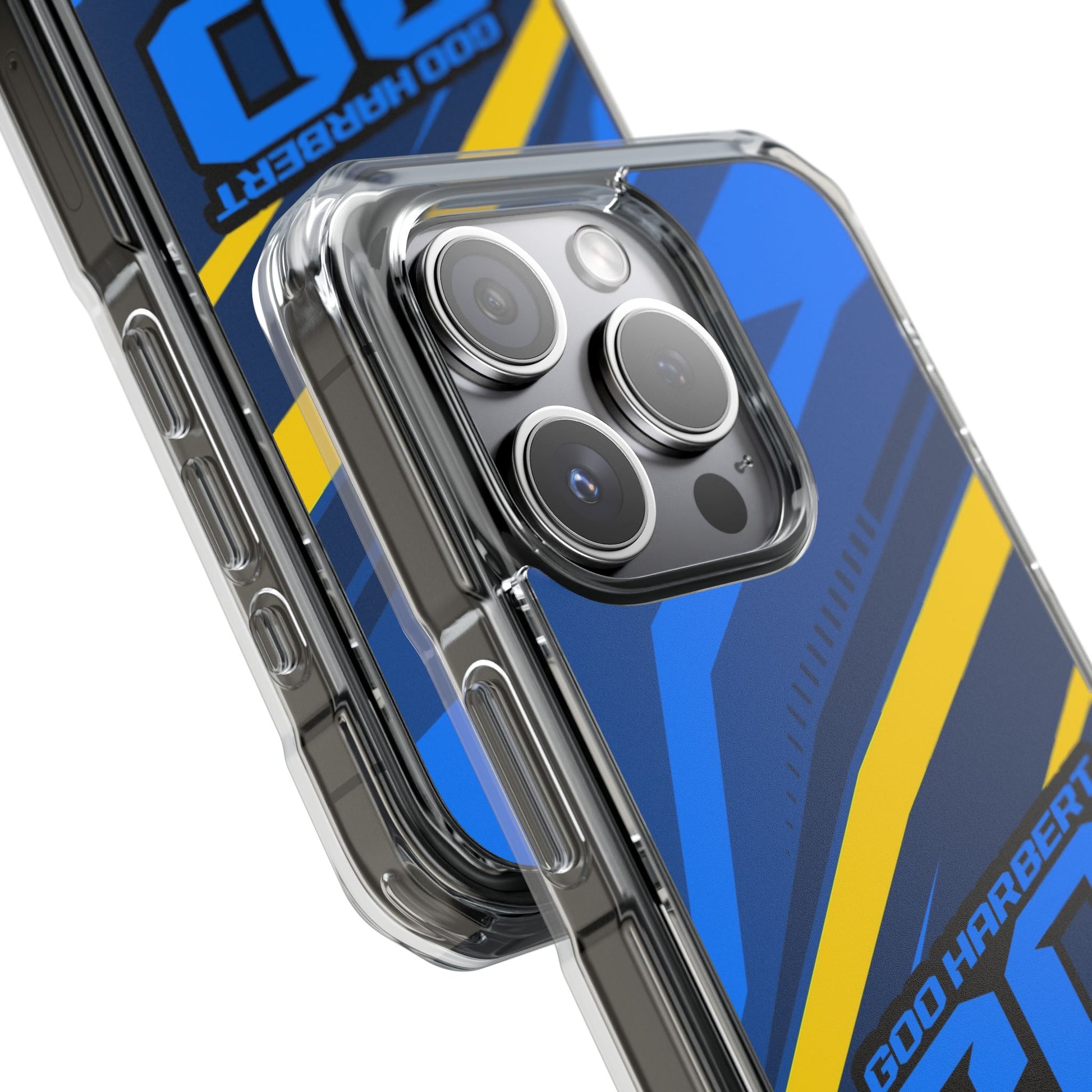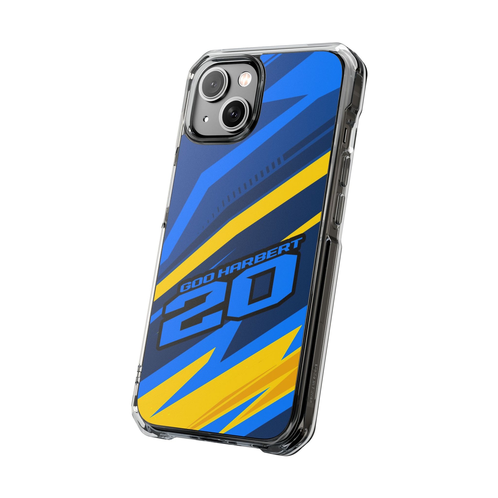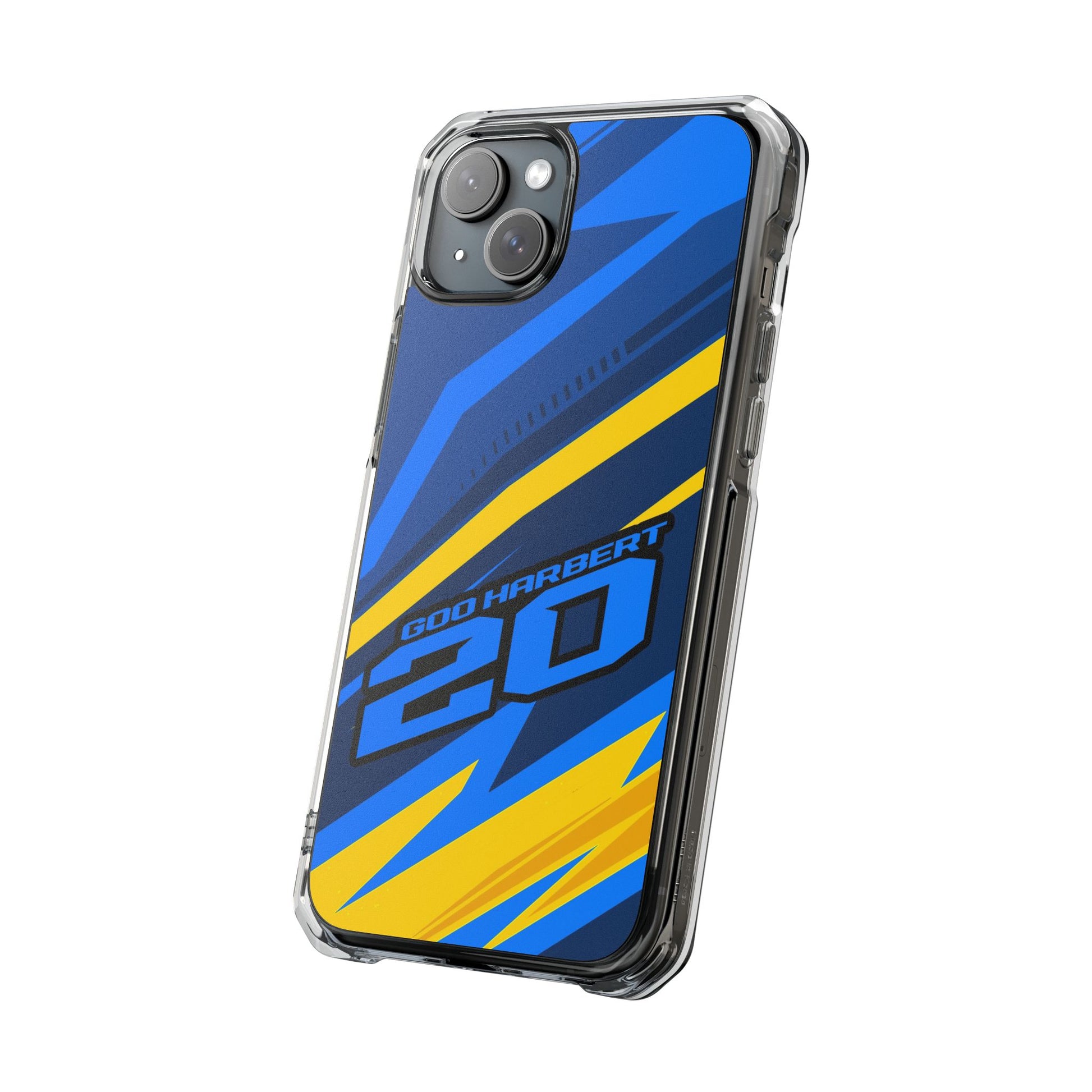Built for speed, inspired by passion. The Harbert Velocity Case captures Reagan Harbert’s bold racing identity in a design that speaks pure adrenaline. Featuring her signature blue and yellow stripes, the powerful #20, and the words “GOD HARBERT” across the back, this case lets every fan carry her drive and determination wherever they go.