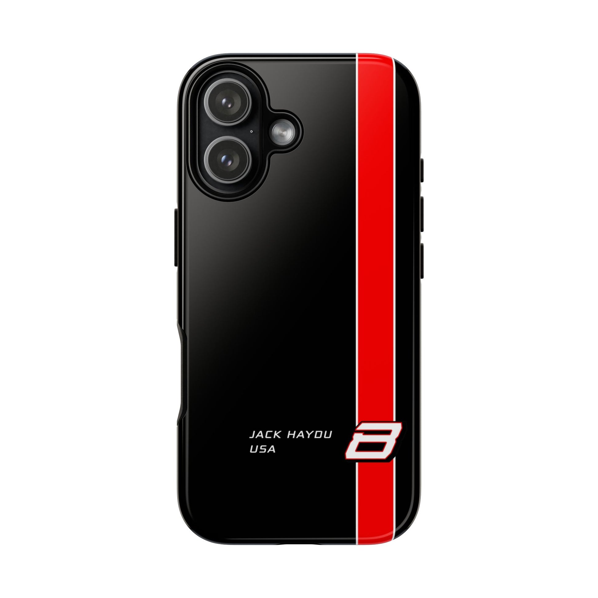 Carry the thrill of the track with you wherever you go with the Jack Haydu Signature Phone Case. Its sleek black design, bold red stripe, and iconic #8 logo make a statement for every true fan, while “JACK HAYDU” and “USA” in crisp white show your loyalty loud and proud. It’s about living the race, celebrating the driver, and showing the world you’re part of Jack’s fan community. Grab yours and wear your passion for speed in style!