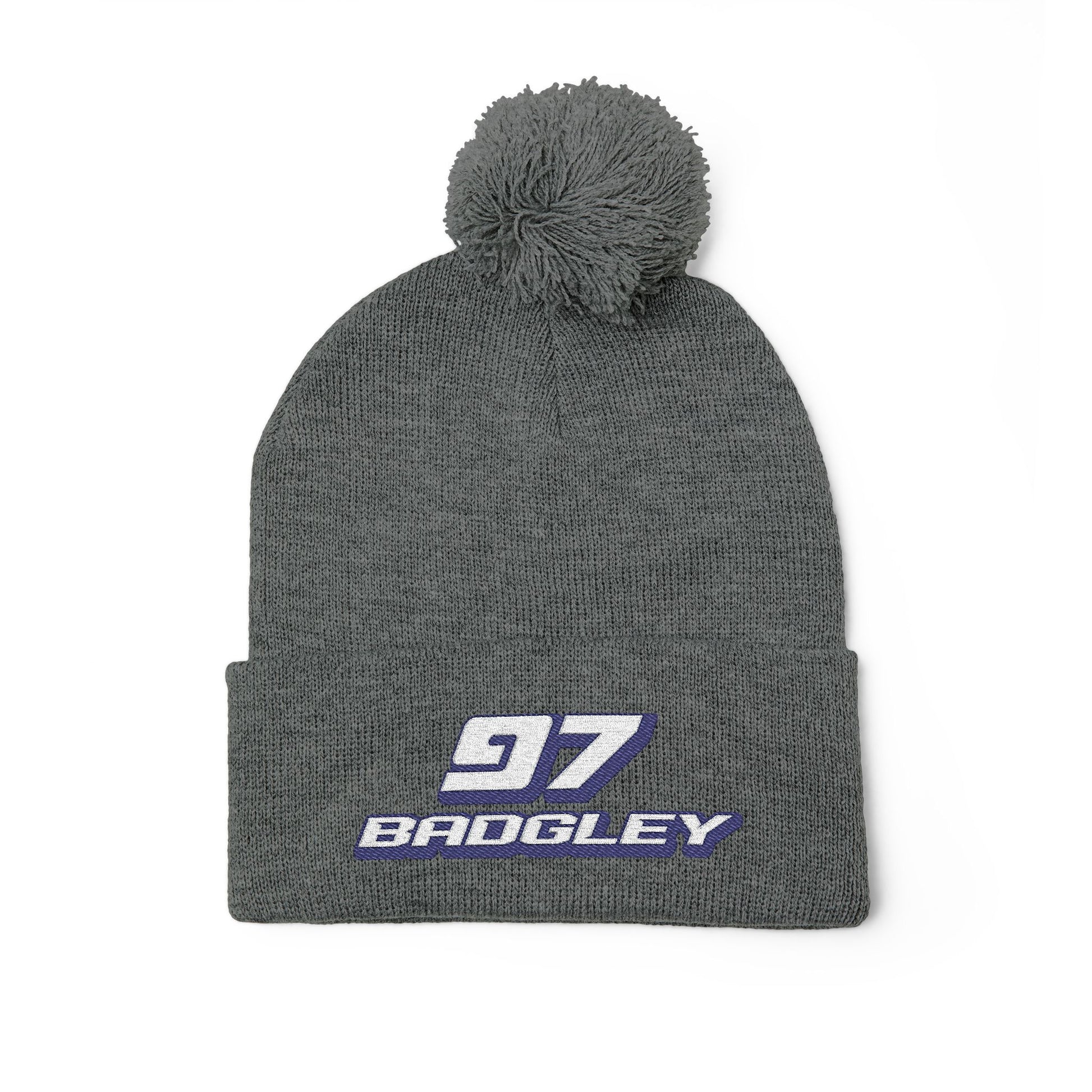 Turn up the heat this winter with Kendra Badgley’s #97 Pom Beanie. Vibrant hot pink and topped with a large, fluffy pom-pom, this cozy knit features a double-layer ribbed cuff for a snug, ear-covering fit. Bold racing-inspired embroidery showcases “97” in white with navy accents and “BADGLEY” in white with navy outline, radiating track-ready energy. Perfect for fans and drivers alike, this beanie blends warmth, motorsport attitude, and standout style—ideal for track days or street-ready winter flair.