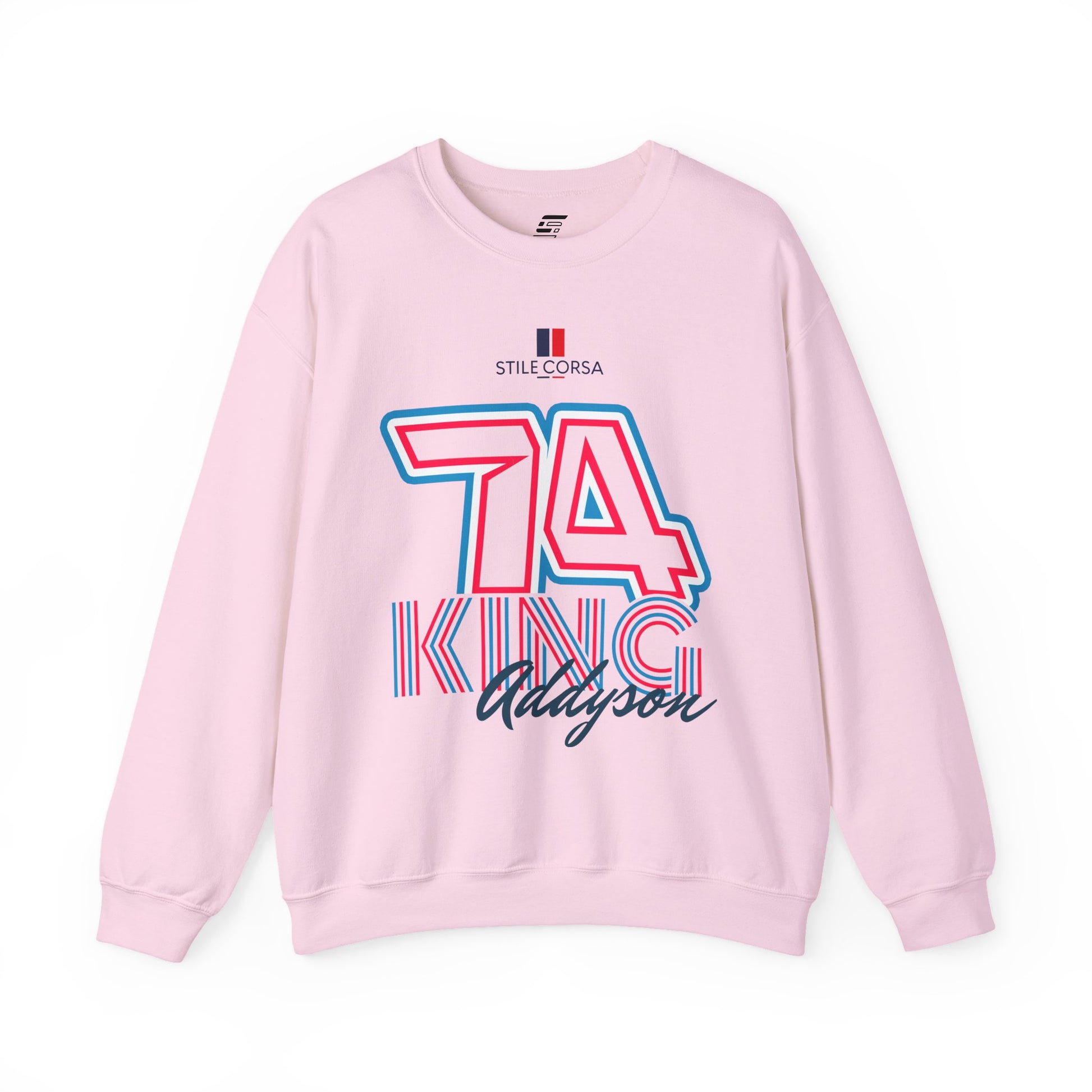 The King Energy #74 Crewneck is made for fans who want to show their support for Addyson King in style. Featuring her bold 74 and a vibrant pink and aqua blue design, this crewneck captures her energy, passion, and fearless personality. Cozy, sporty, and full of fan pride, it’s the perfect way to stand with Addyson on and off the track.