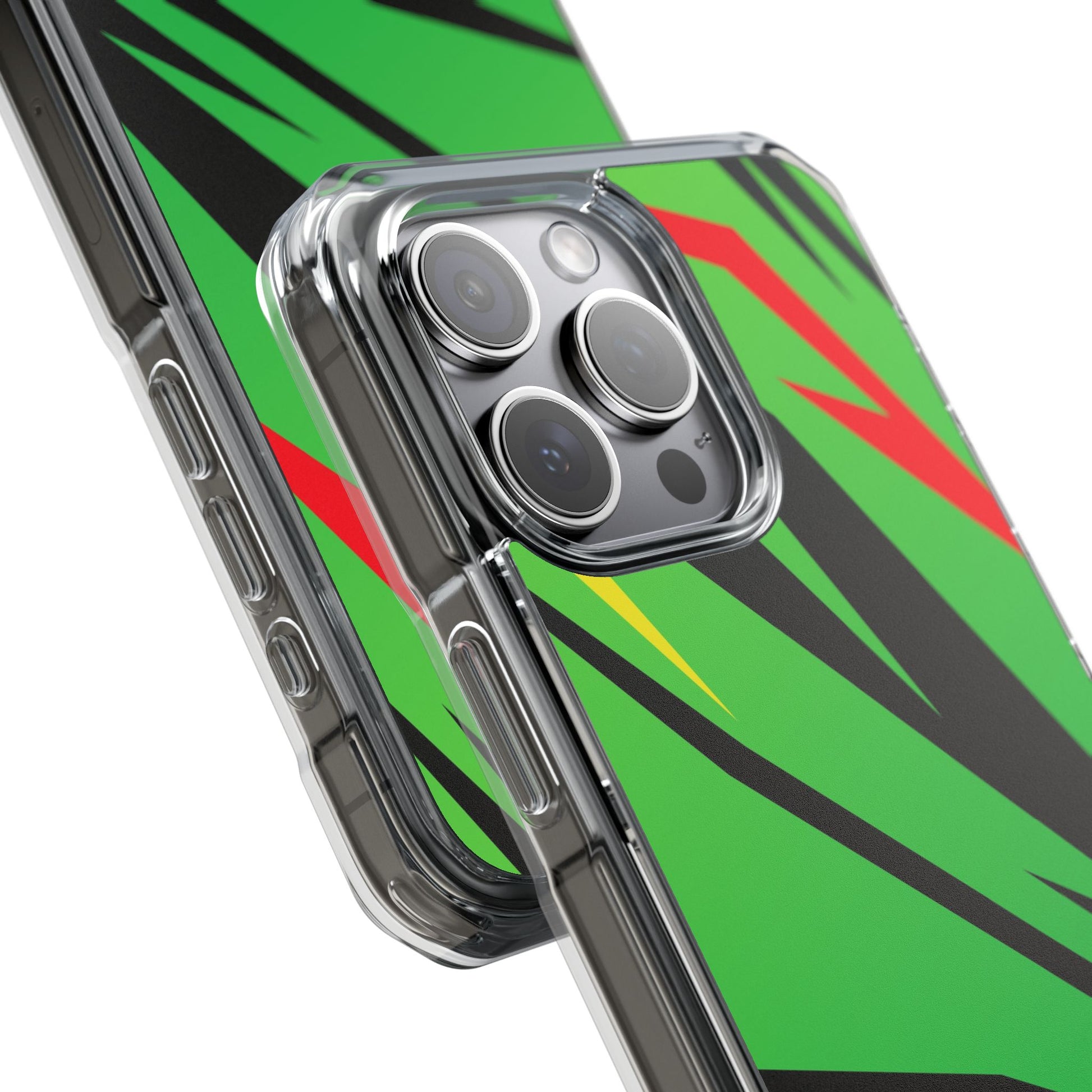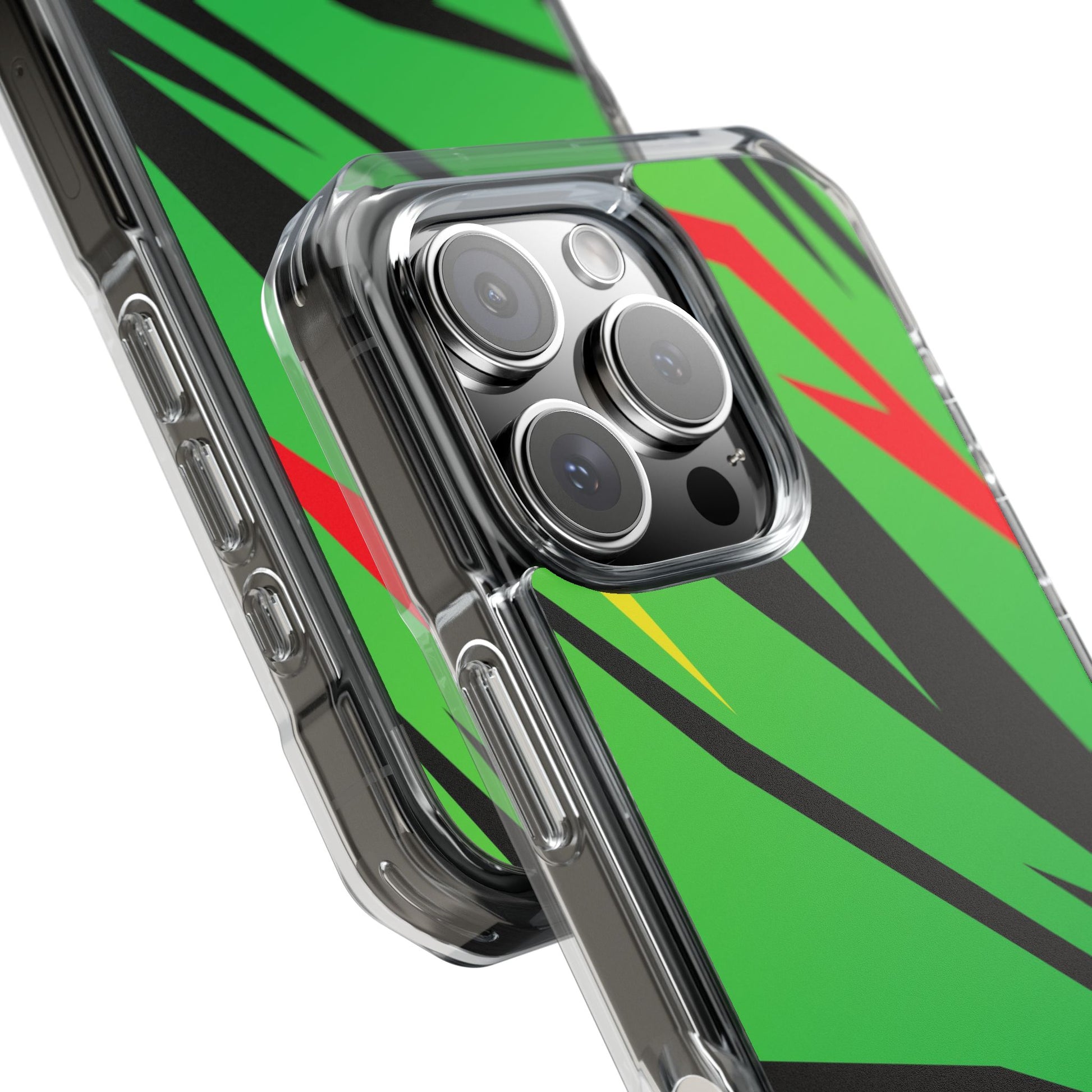 Turn every call, text, and scroll into a statement of speed and style. This case features a vibrant green backdrop electrified with black, red, and yellow diagonal streaks, capturing the raw adrenaline of the track. The bold “GREENE” lettering across the base seals it as part of Nate’s signature collection.