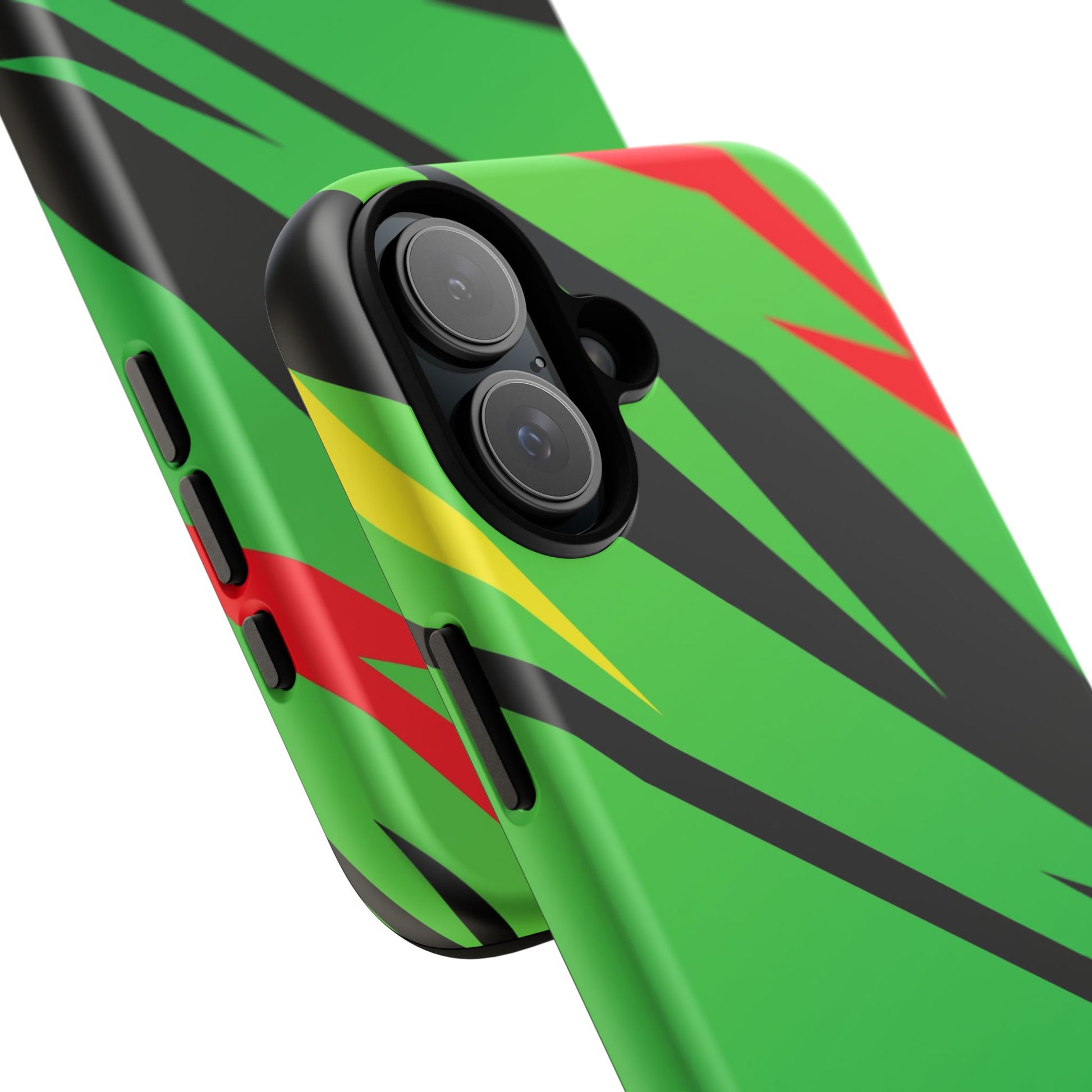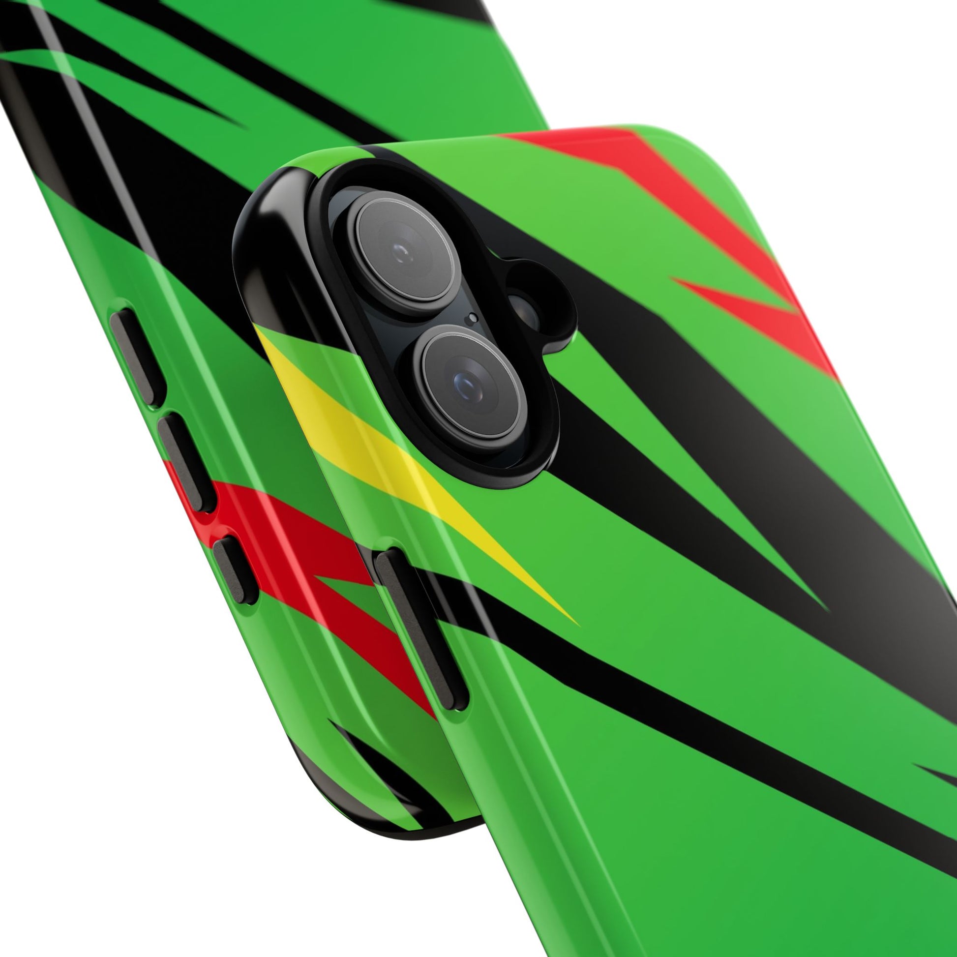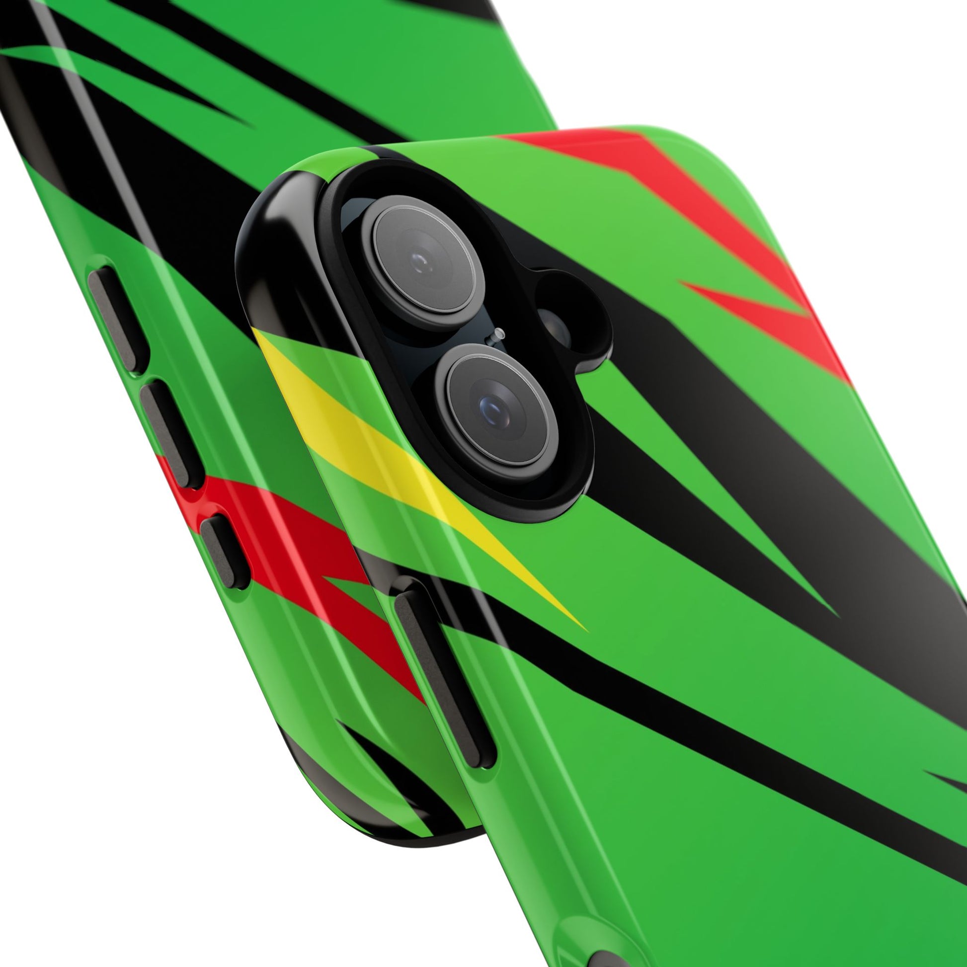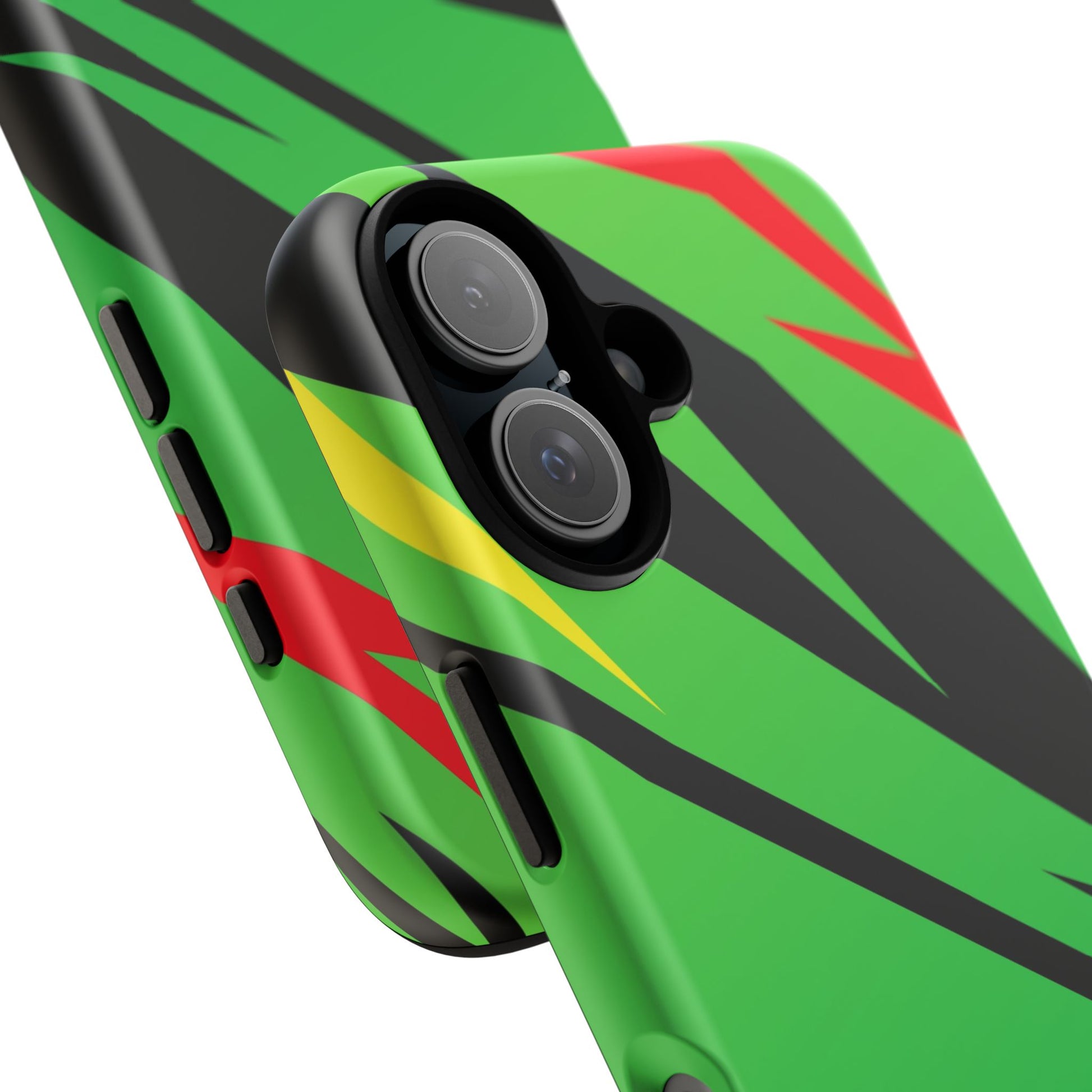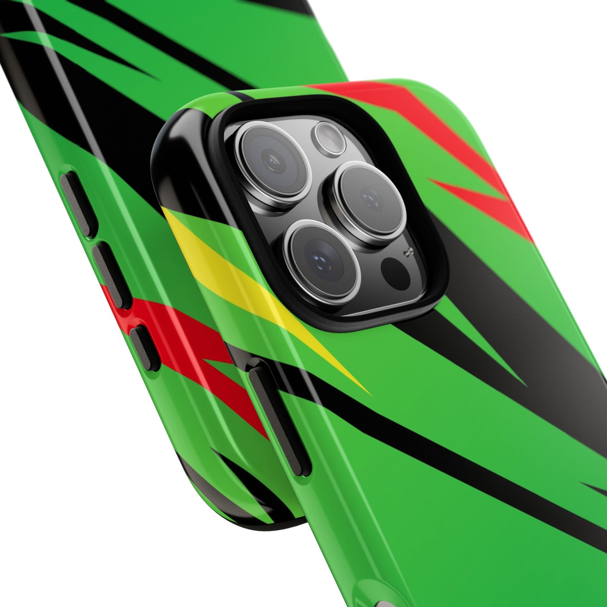 Turn every call, text, and scroll into a statement of speed and style. This case features a vibrant green backdrop electrified with black, red, and yellow diagonal streaks, capturing the raw adrenaline of the track. The bold “GREENE” lettering across the base seals it as part of Nate’s signature collection.