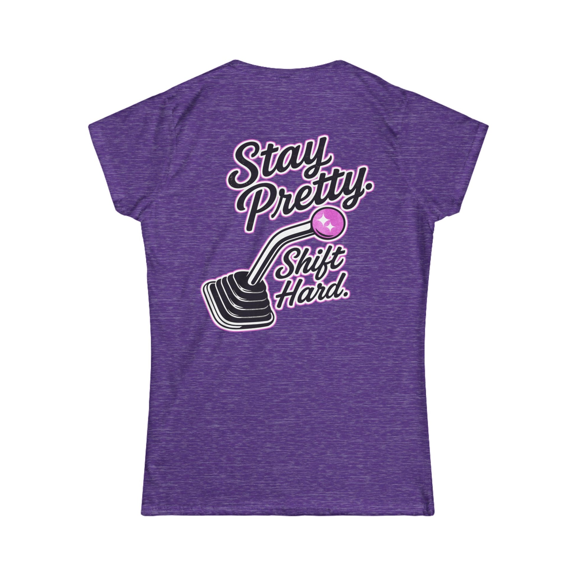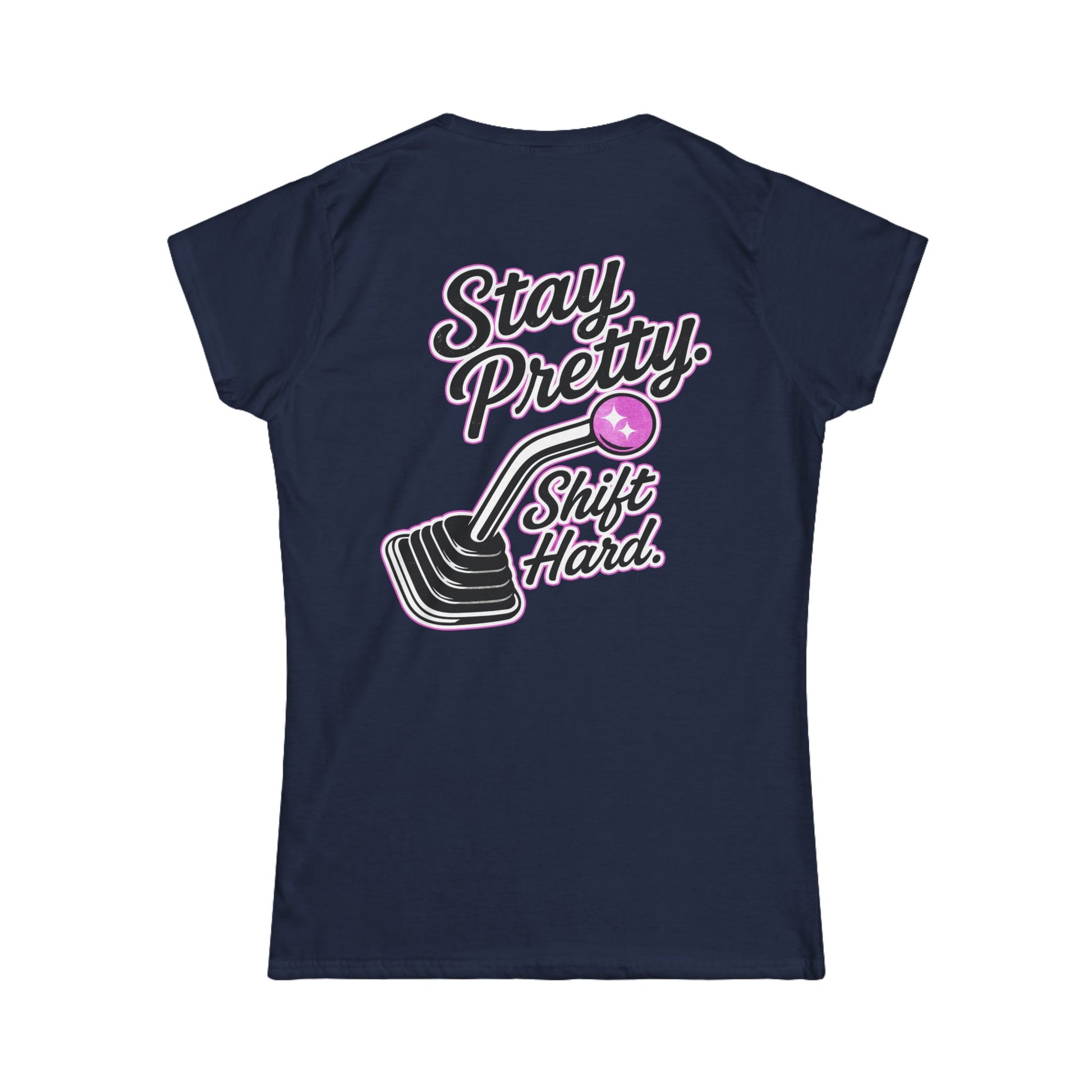 A bold and stylish tee for women who live for the thrill of driving stick. Designed for those who know that confidence is just as important as control. Featuring the powerful statement “Stay Pretty, Shift Hard” and a classic gear knob graphic on the back — it’s the perfect balance of beauty and performance.