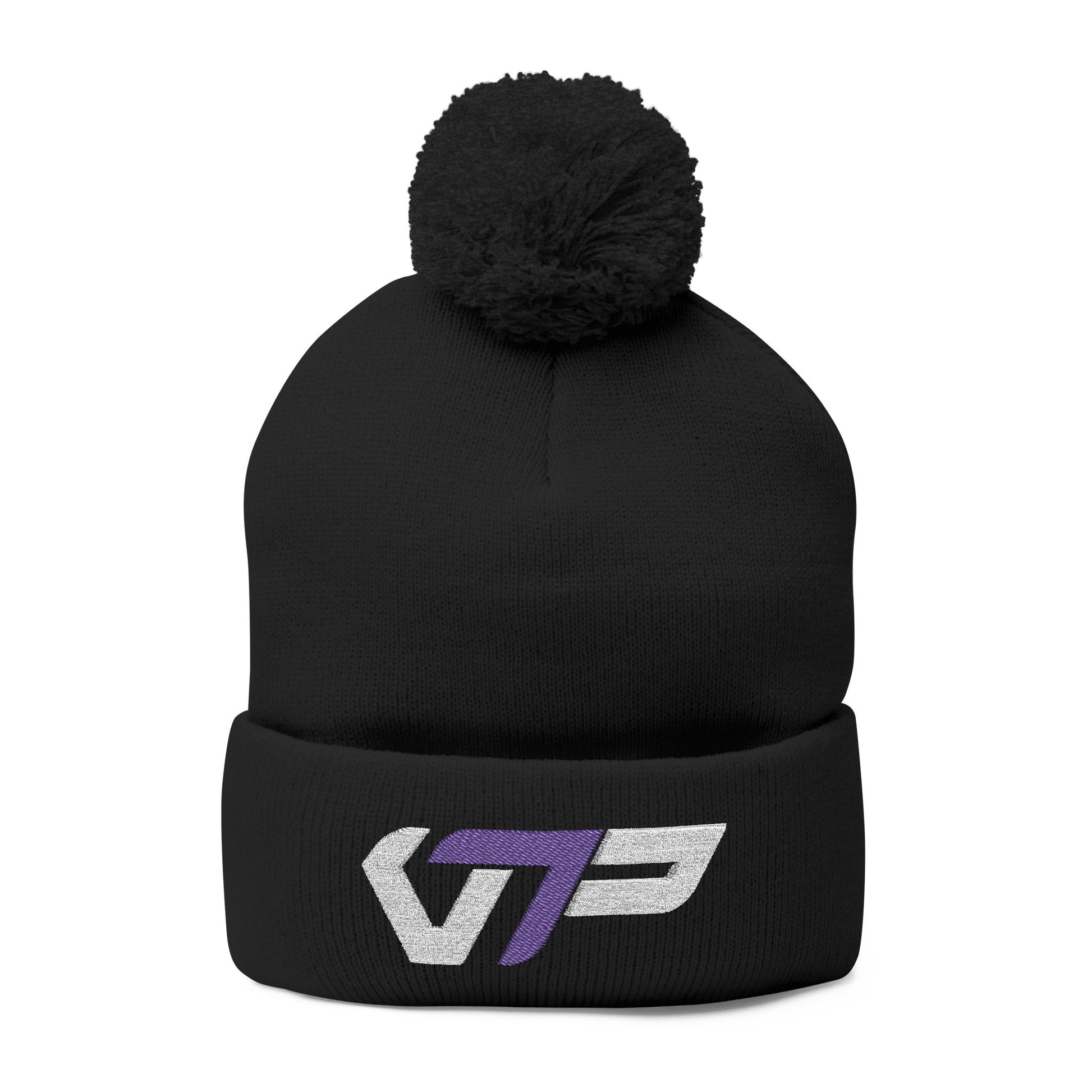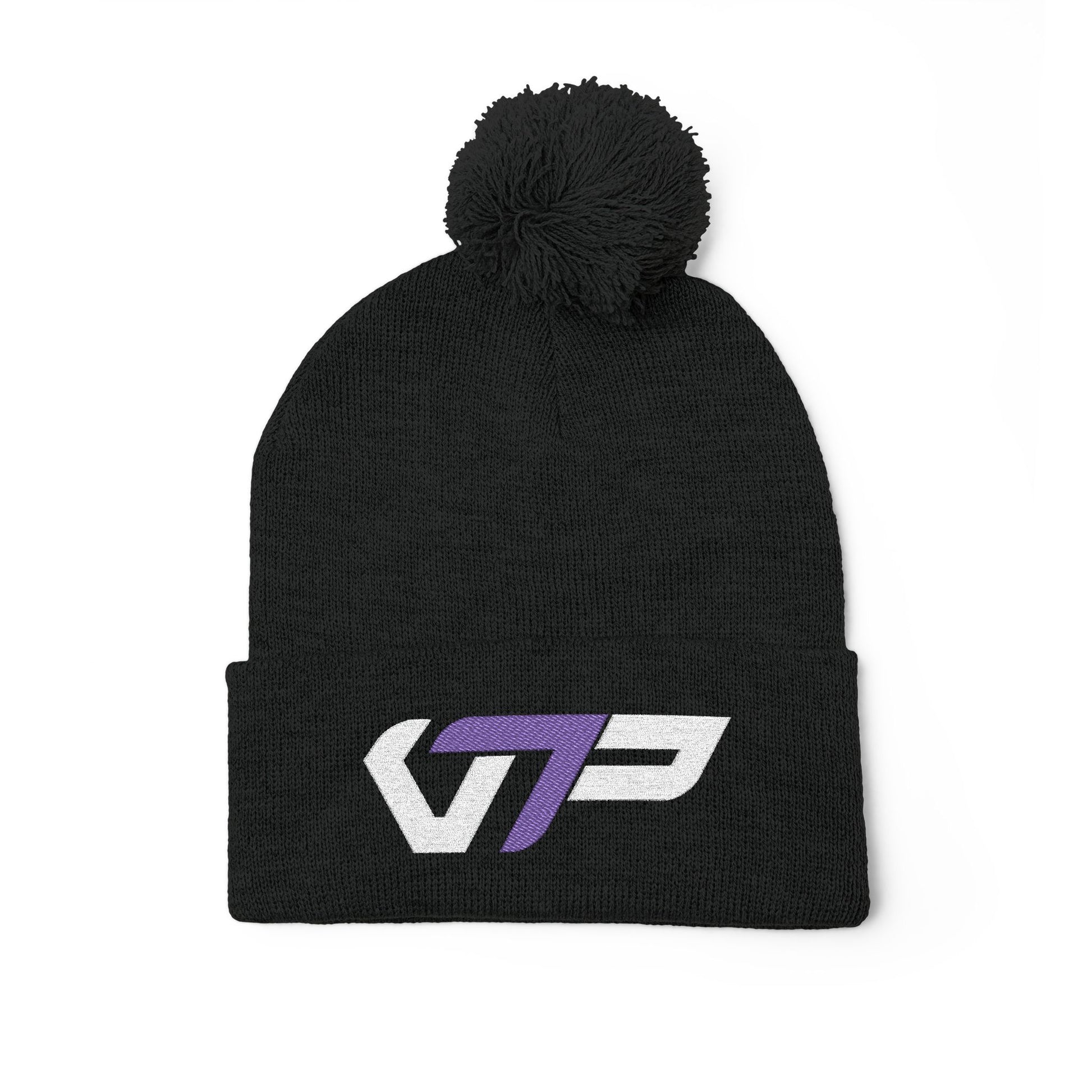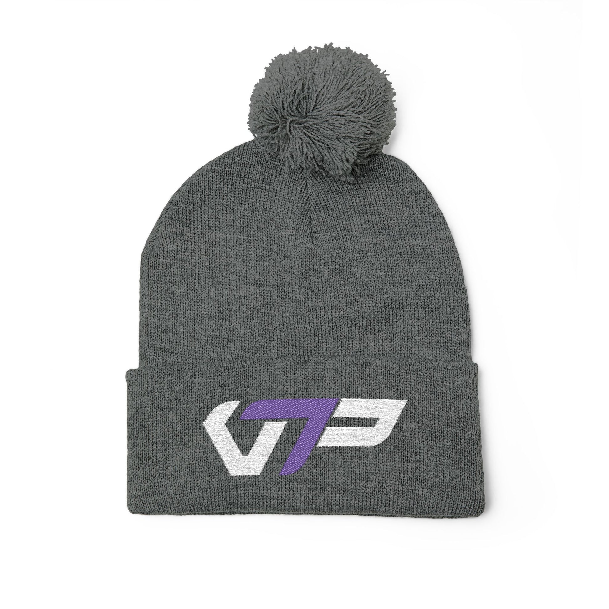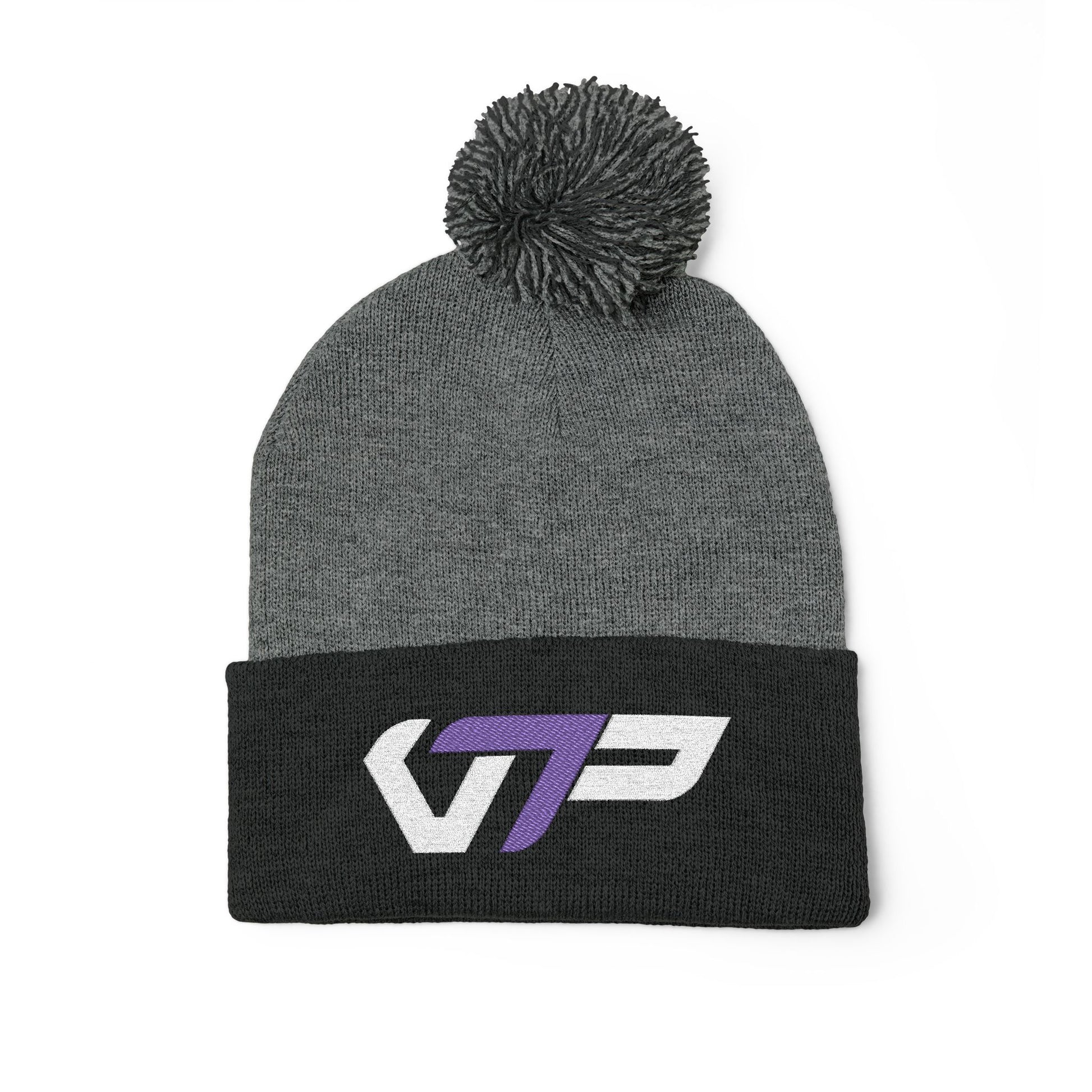 Turn heads on and off the track with the V7P Purple Pom Beanie. This two-tone knit features a heather gray body and crown topped with a large, fluffy pom-pom, while the solid black cuff anchors the design. Centered on the cuff is the bold “V7P” embroidery, highlighted by a striking purple “7” that adds a pop of color and energy. Designed for fans of high-performance motorsport and esports-inspired style, this beanie combines warmth, comfort, and bold branding—perfect for cold-weather events, trackside flair, or standing out in the streets.